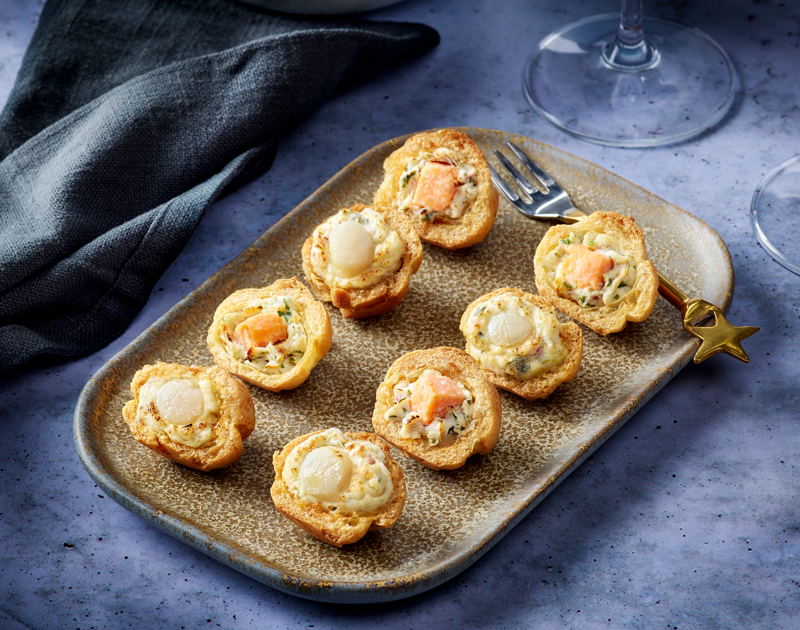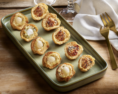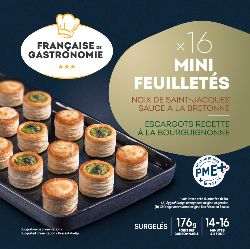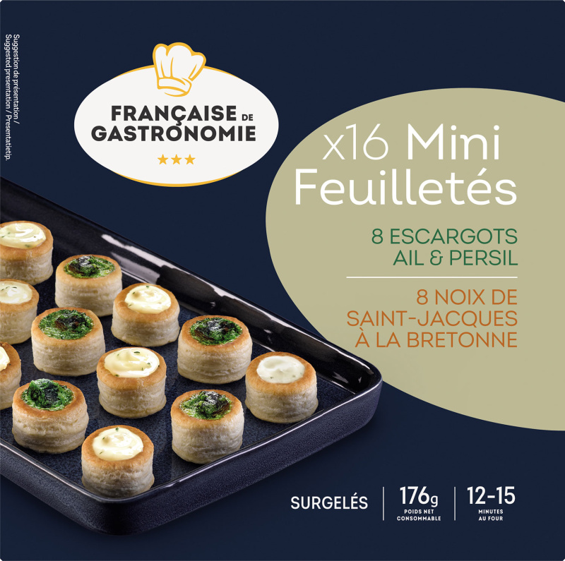 Sous forme de mini feuilletés ou de bouchées gourmandes, retrouvez les ingrédients nobles (noix de Saint Jacques, escargots, foie gras, Riesling...) prêts à déguster lors de vos moments de partage en famille et entre amis.