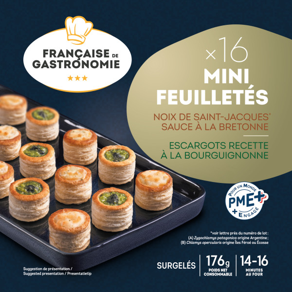 A variety of colors and recipes made with noble ingredients (scallops, escargot...) filled with generous and tasty fillings. Ready to use, quick to cook and user-friendly products.