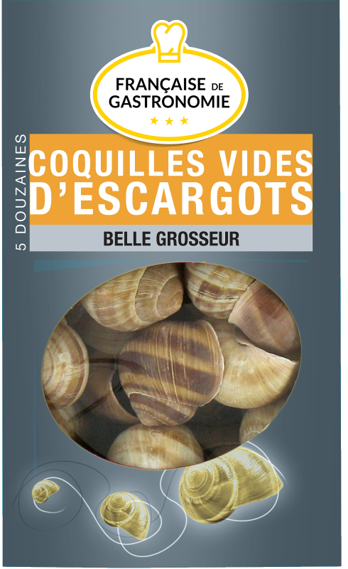 Carne de caracol de Borgoña de tamaño pequeño y mediano, cocida en court-bouillon, para preparar según sus preferencias.