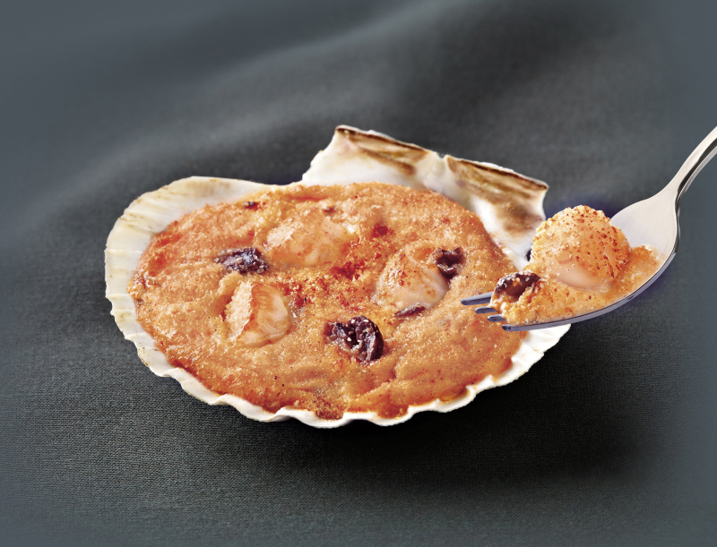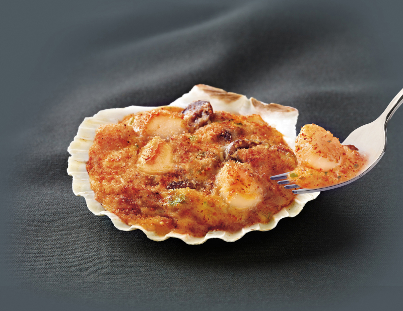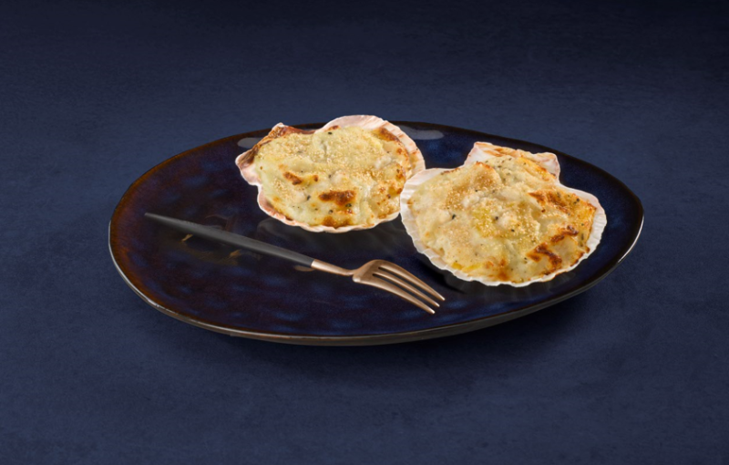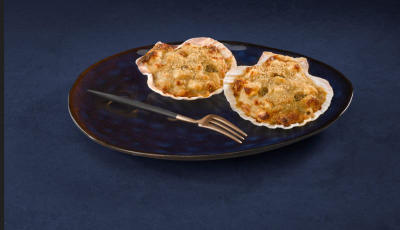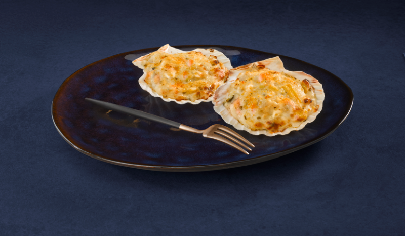 Un surtido de vieiras cocinadas con rellenos ricos y generosos :
