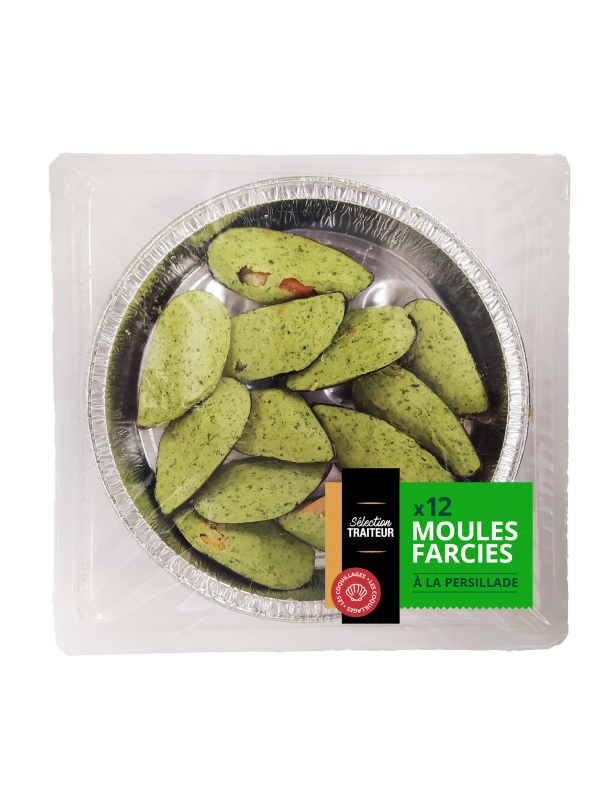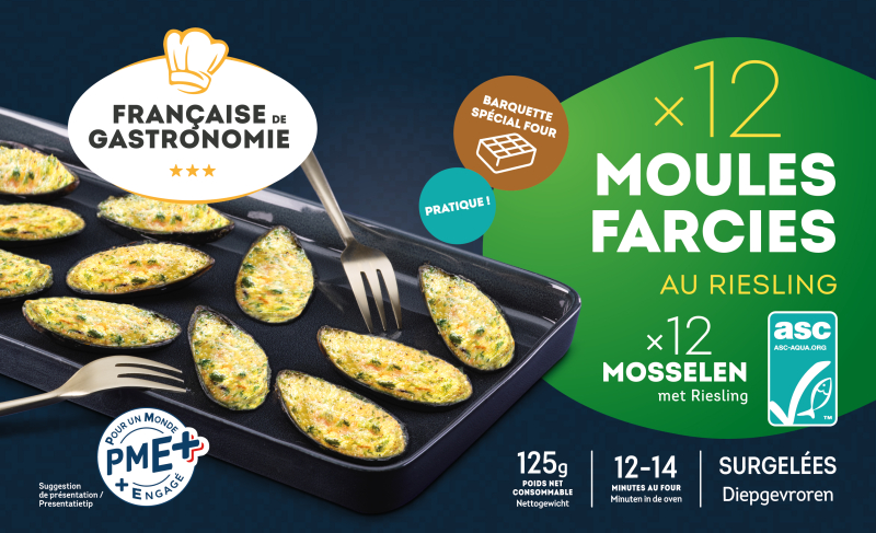 Una mezcla de mejillones con un generoso y sabroso relleno de mantequilla, ajo y perejil, y otro cocido en Riesling.
