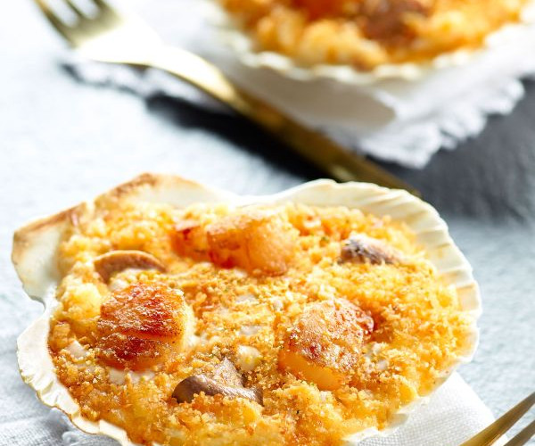 Cuisinées à partir d’une recette traditionnelle à la Bretonne à partir de beurre, de crème et de vin blanc, ces délicieuses noix de St-Jacques réveilleront les sens des gourmets à la recherche de tradition et de terroir.