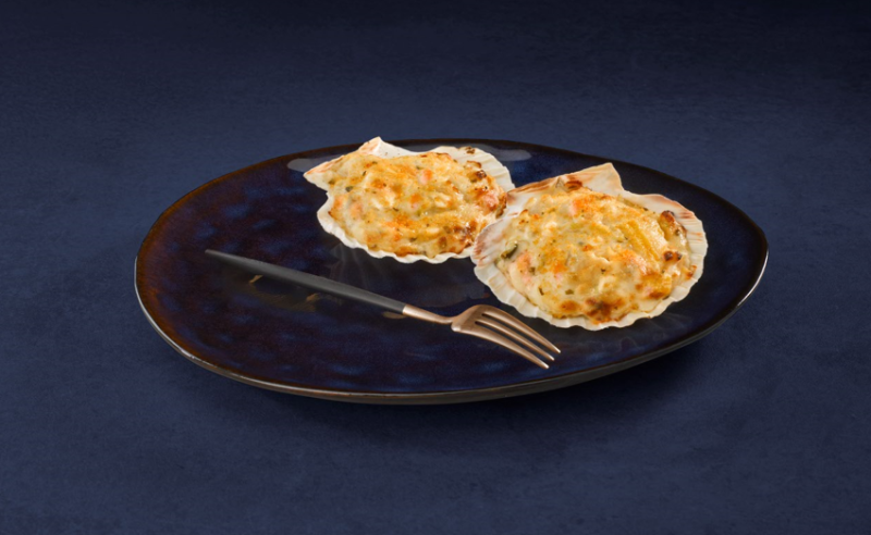 Quatre délicieuses coquilles aux noix de Saint-Jacques et saumon cuisinées dans une sauce à la crème fraiche, au citron et au basilic. Des coquilles gourmandes et festives.