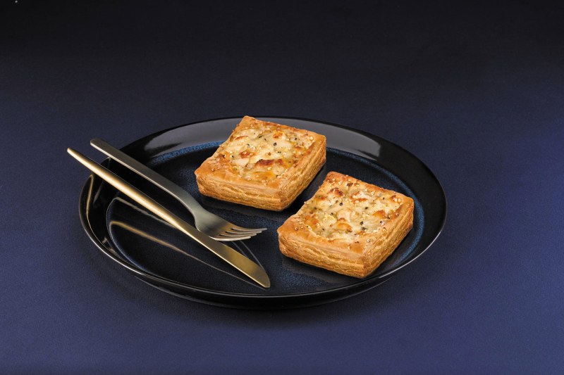 Feuilletés croustillants avec un topping aux graines de millet pour une présentation festive. Ces délicieuses tartefines sont garnies de volaille et truffe d’été 1% aromatisée.