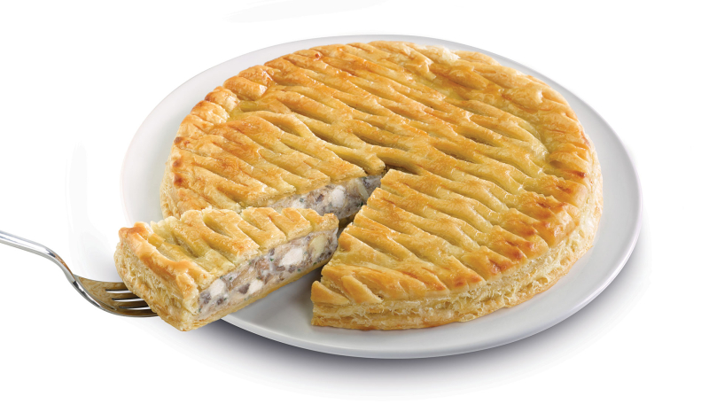 Une délicieuse tourte alliant le croustillant d’une pâte feuilletée au format familiale et d’une garniture gourmande aux champignons de paris et aux morceaux de poulet cuit.